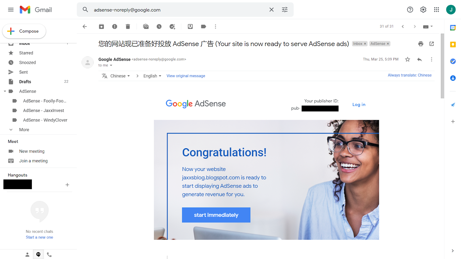 Jaxx Invest finally got the AdSense approval on 21st April with 19 published and indexed posts, most of them were long textual content.